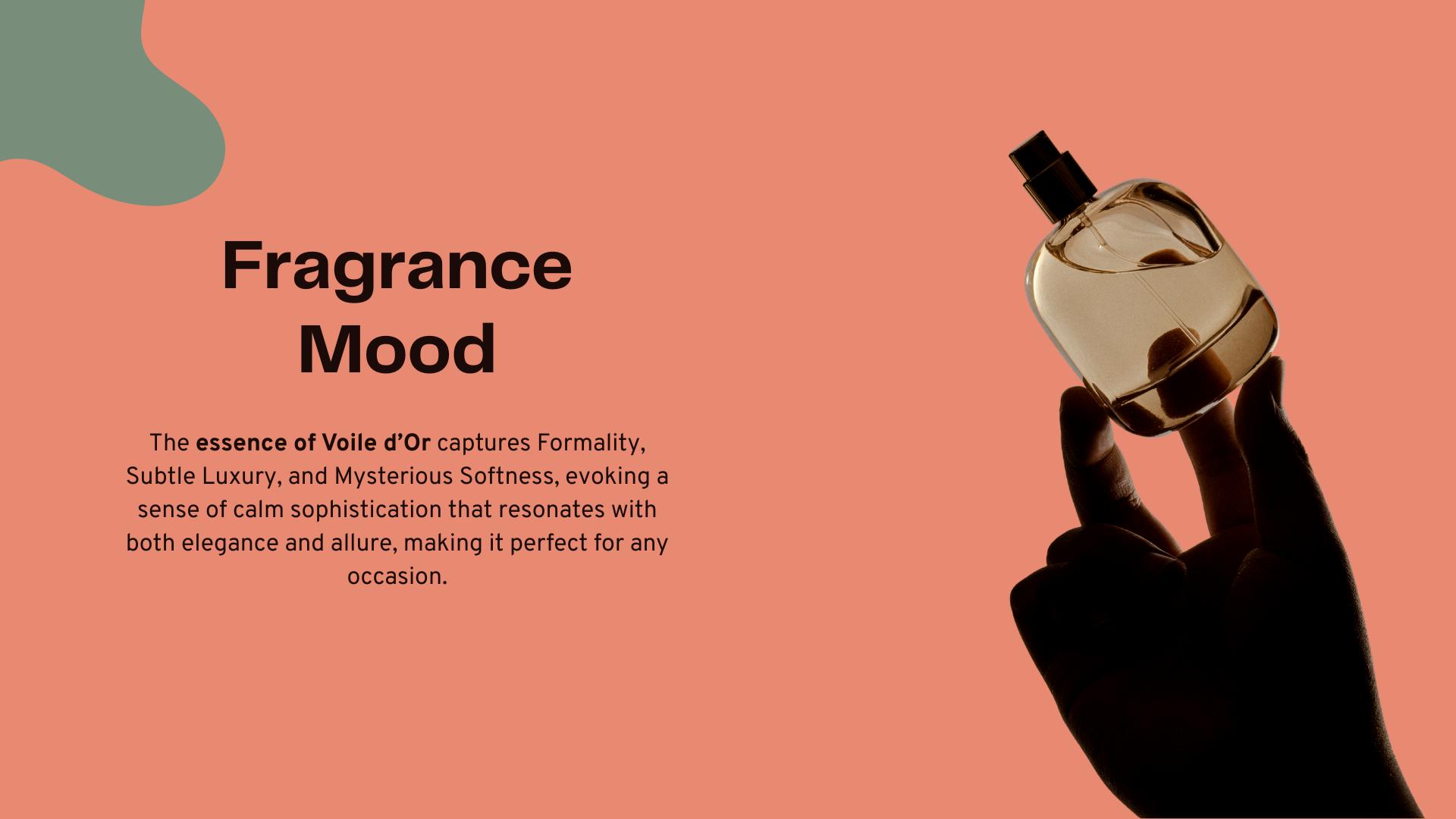 Voile d’Or, meaning “Golden Veil” in French, is a masterfully blended fragrance that drapes the skin in sophistication and subtle power. Neither overtly masculine nor strictly feminine, this unisex scent is designed for those who understand that elegance transcends gender — and time.